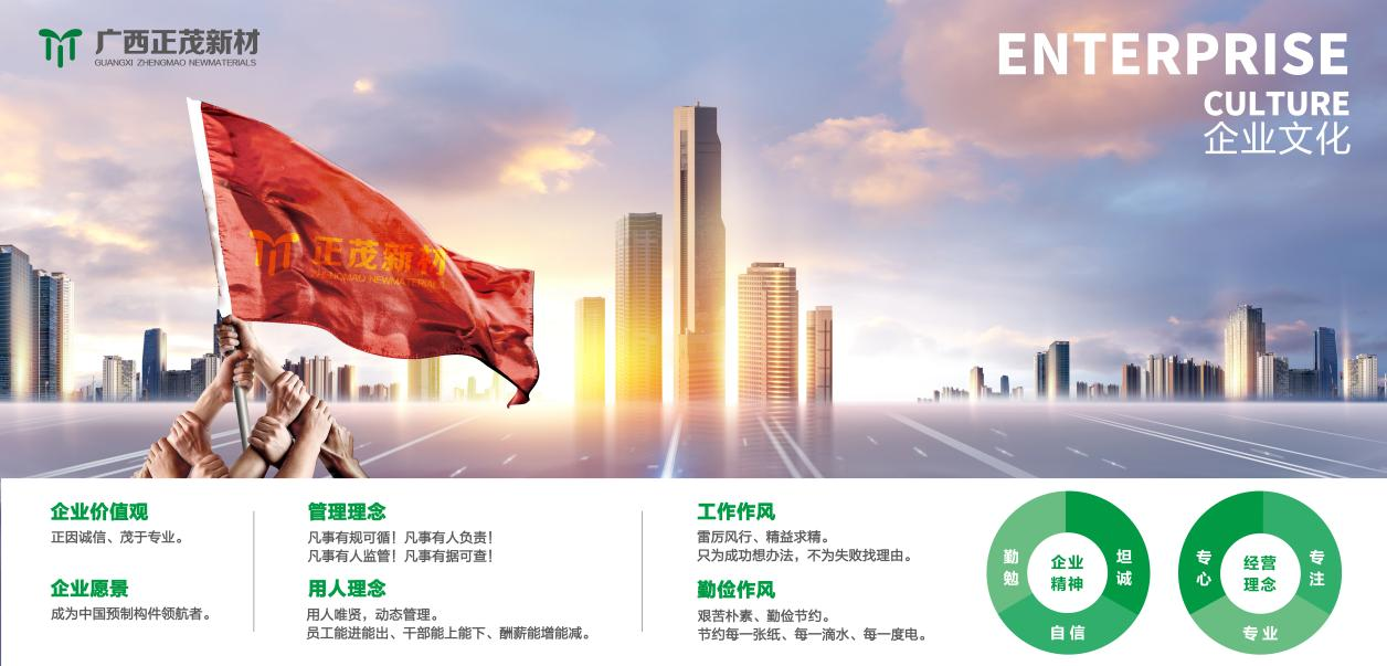 正茂集團(tuán)是一家專業(yè)從事高端混凝土研制的高新技術(shù)企業(yè),創(chuàng)建于2007年,自主研發(fā)混凝土制品30余種,擁有國家級專利20余項(xiàng),經(jīng)營范圍以新型環(huán)保建筑復(fù)合材料及裝配式建筑預(yù)制構(gòu)件為主體。2019年7月,正茂集團(tuán)正式簽約入駐馬山縣蘇博工業(yè)園區(qū),投資建設(shè)以高鐵、地鐵、市政、電力、水利及裝配式建筑構(gòu)件等為主的生產(chǎn)線項(xiàng)目。...